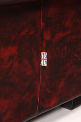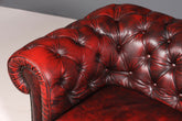 Dieses authentische englische Chesterfield Sofa verkörpert zeitlose Eleganz und handwerkliche Meisterschaft. Das 2-Sitzer Modell besticht durch sein charakteristisches Design mit geknöpfter Polsterung und markanten Messingnägeln, bezogen in edlem Oxblood-Leder, das mit den Jahren an Patina und Charakter gewinnt. Die klassischen Rollen und die großzügige Sitzfläche bieten sowohl visuellen als auch physischen Komfort. Ein Stück britischer Möbelkultur, das jeden Wohnraum mit Raffinesse und Persönlichkeit bereichert – ideal für Sammler und Liebhaber authentischer Vintage-Möbel.