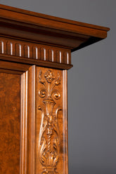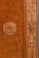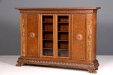 This impressive Neo-Renaissance bookcase embodies the elegance of the Gründerzeit era with its elaborate craftsmanship and timeless aesthetic. Featuring generous display compartments and sturdy shelves, it offers ideal storage for valuable books, collectibles, and exquisite accessories. Its distinctive architecture and fine details make it a striking centerpiece in any study or office. Perfect for lovers of authentic antiques who appreciate quality and history. A piece of furniture that defines both space and personality.