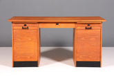 This iconic Bauhaus desk combines functional design with timeless elegance. The solid wood construction and characteristic roll-top mechanism are hallmarks of authentic mid-century craftsmanship. The generous work surface provides ideal conditions for focused work, while the clean lines blend harmoniously into both modern and classic interiors. An investment in quality and history – a piece to last for generations.