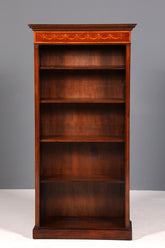 This elegant English bookcase from the 1960s captivates with its timeless beauty and craftsmanship. The mahogany wood displays the characteristic warm tones and patina of authentic vintage furniture. With multiple shelves, the bookcase offers ample space for books, decorative objects, and collectibles. Its classic English design makes it the perfect statement piece for a living room or library – a piece of history that brings character and sophistication to any space.
