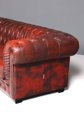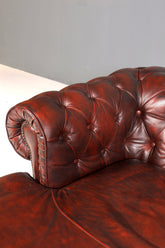 Wunderschönes seltenes Original Chesterfield Sofa mit Hocker 4- Sitzer echt Leder Oxblood Couch Englisch Eckcouch
